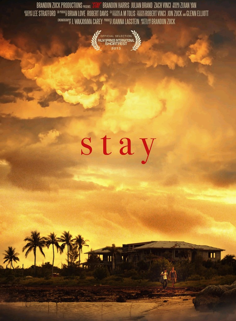 Stay es un cortometraje dirigido por Brandon Zuck, cineasta experto en crear historias cortas de calidad y que se ha lanzado recientemente al largometraje de terror, gracias a la serie antológica Into The Dark. Aunque de sus otros trabajos, hablaremos más adelante. En esta ocasión, el género que abarca es una especie de thriller juvenil con trasfondo LGTB que nos cuenta la manipulación que un chico ejerce sobre otro, gracias a su poder de persuasión y por ende, de seducción. Todo perpetrado con poca duración pero cuenta lo que tiene que contar sin ningún tipo de preámbulo. Vamos, que va directo y al punto. Recordemos que no es una película pero esta pequeña obra, se ha filmado con mucho mimo. El reparto está formado por Brandon Tyler Harris, Julian Finch y Zach Vinci. Recomendado a los amantes del drama con toques de suspense.