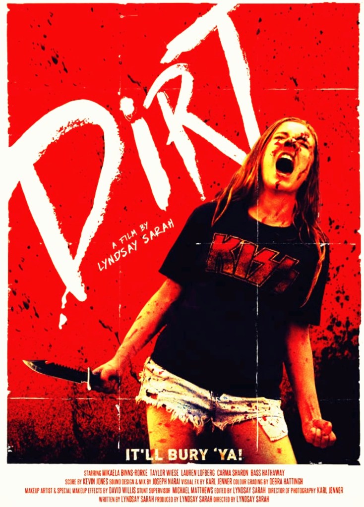 Dirt es uno de los primeros cortometrajes de la realizadora australiana Lyndsay Sarah en la que nos presenta la típica historia de supervivencia con mujer fuerte al frente aunque con un giro inesperado de los acontecimientos. La premisa gira en torno a una chica autoestopista que se adentra en el bosque con un grupo de personas que se encuentra en la carretera. Como es de esperar, las intenciones de la pandilla no son de los más nobles pero lo que no esperan es la reacción de la adolescente, una vez que la acorralan. Historia de escasos minutos de duración, pocos medios pero muertes rápidas y sin contemplaciones. Se ve en suspiro y juega bien con las reglas del subgénero que trata, aparte de ser una muestra de horror femenino. Protagonizan Mikaela Binns-Rorke, Taylor Wiese, Carma Sharon y Bass Hathaway entre otros.