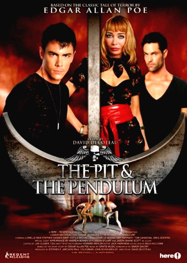 El Foso y el Péndulo (2009) es una versión muy libre y contemporánea de un relato de Edgar Allan Poe cuya trama incluye elementos LGBTQIA+ y que poco tiene que ver finalmente con la obra del famoso escritor de estilo gótico. La trama nos cuenta como una mujer invita a un grupo de estudiantes de lo más variopinto (en cuanto a personalidad y preferencias sexuales se refiere) que van a formar parte de un experimento donde la sugestión y el hipnotismo serán los principales protagonistas. Una vez instalados en la mansión de turno, los jóvenes comienzan a desatar sus instintos más primarios que los llevarán a cometer actos impulsivos con desagradables consecuencias para todos ellos. Dirige David DeCoteau y protagonizan principalmente Lorielle New, Bart Voitila, Michael King, Tom Sandoval, Stephen Hansen y Jason Shane-Scott entre otros.