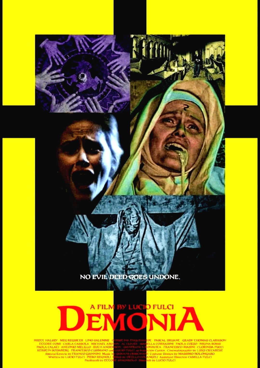 Demonia (1990) es una película de Lucio Fulci que se encuentra protagonizada por Brett Halsey, Meg Register, Christina Engelhardt, Lino Salemme y Paola Cozzo entre otros. La trama nos cuenta como un grupo de arqueólogos y especialistas de todo tipo, se encuentran en Sicilia haciendo un trabajo de investigación cerca de unas ruinas donde hace mucho tiempo, unas monjas fueron crucificadas por presunta herejía. A medida que van descubriendo lo sucedido en ese lugar, una serie de muertes violentas comienzan a sucederse. Filme de horror que mezcla varios subgéneros justo a principios de los noventa entre el que destacamos el nunsploitation que se hizo especialmente famoso en la década de los setenta. Homicidios bestiales marca del realizador de turno es otro de los sellos interesantes de este título. Entretenida y escabrosa a partes iguales. Para incondicionales del terror italiano, las novicias y los mininos. Desde luego, no dejará indiferente.