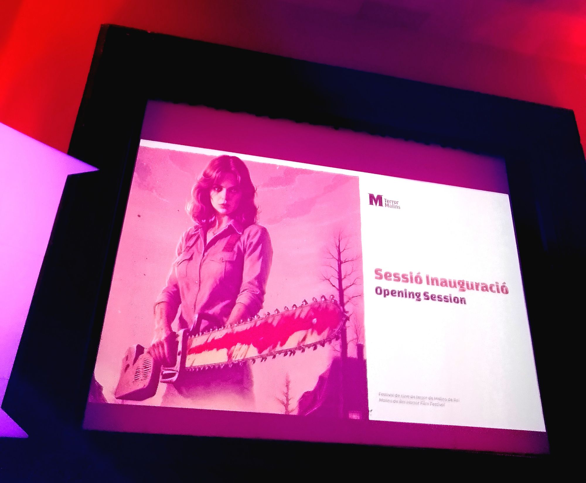 Previo al estreno de la película, pudimos ver un cortometraje con el tema del festival antes explicado que incluía buenas dosis de humor (suponemos que lo veremos de nuevo en la sesión pertinente que será el día de mañana) y además, pudimos gozar del spot de este año del TerrorMolins en pantalla grande, presentado por su director Paco Ruiz, actriz y actor principales (Júlia Lara y Dani Andreu) y el músico encargado del orquestar el acompañamiento de esa pequeña maravilla llena de sangre y diversión que ha sido Joan Vilà.