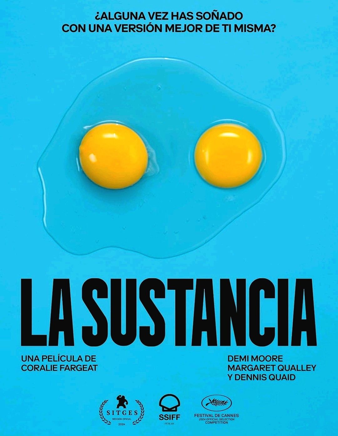¿Alguna vez has soñado en que el cine de terror actual sea respetado y dejen de poner etiquetas absurdas donde no toca? Pues este es el caso de La Sustancia (The Substance, 2024) dirigida por Coralie Fargeat, una realizadora a la que se le nota que le gustan las cintas de miedo pasadas de vueltas y a la que con este título, están intentando polarizar a otro tipo de intereses fuera del entretenimiento puro y duro. El filme en cuestión es excelente. Una montaña rusa de más de dos horas de duración que se pasan volando. Y para conseguir eso, hay que tener talento. Todo sea dicho. Ella lo tiene y lo demuestra. Vamos por partes. El filme no ofrece nada nuevo que no hayamos visto mil veces en el cine de Serie B pero Coralie demuestra estilo, estética y ha conseguido endosar en los multicines esta obra incomoda, tremendamente satírica y divertida a más no poder. El problema es como partes de la crítica la están intentando vender como algo nunca visto y ciertos sectores la están condicionando con discursos de fulanas baratas. Pero si eso sirve para acercar a un público más amplio, pues bueno. Peores estrategias de marketing se han visto.