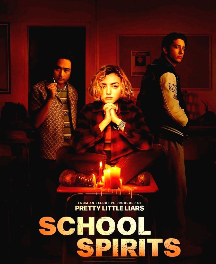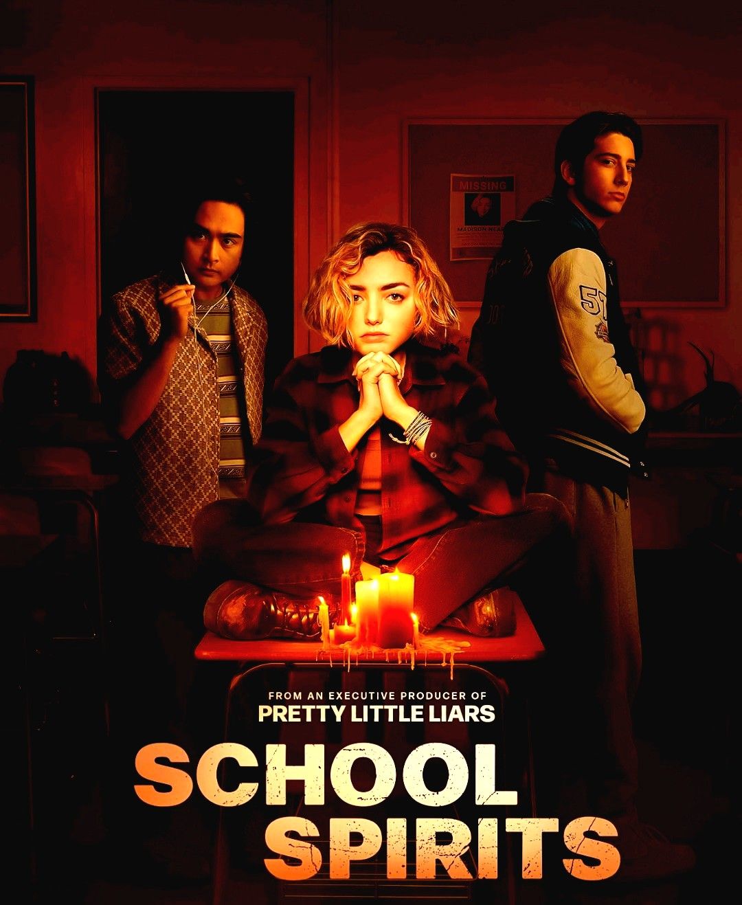 School Spirits (2023) es una serie de televisión que consta de ocho episodios en su primera temporada. La trama nos cuenta como una adolescente se encuentra en una especie de limbo, atrapada en el instituto donde al parecer murió en circunstancias misteriosas. Junto a otros espíritus teenagers, tendrá que descubrir que le sucedió para poder liberarse de esa dimensión fantasmal. Agradable drama sobrenatural juvenil con tintes de comedia, perfecto para espectadores en su edad más lozana. Entretenida en líneas generales si gustan este tipo de relatos de almas sin descanso. Protagonizan Peyton List, Milo Manheim y Josh Zuckerman entre otros.