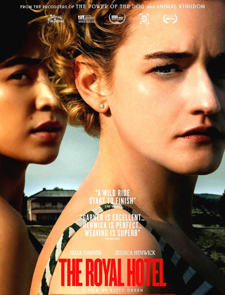 Hotel Royal (The Royal Hotel, 2023) es una película dirigida por Kitty Green que se encuentra protagonizada por Julia Garner, Jessica Henwick y Herbert Nordrum entre otros. La trama nos cuenta como dos jóvenes mujeres aceptan un empleo como camareras en un bar que se encuentra en mitad del desierto. Allí se encontrarán con un ambiente opresivo y machista que podría poner en peligro su integridad e incluso, sus vidas. Coproducción australiana que nos cuenta una historia interesante que se aleja de clichés y panfletos feministas pero que a su vez, es mucho más reivindicativa, combativa y empoderada que otros filmes que si se crean con ese propósito en concreto. Aquí vemos plasmados unos temores muy reales. Recomendada sin reservas.