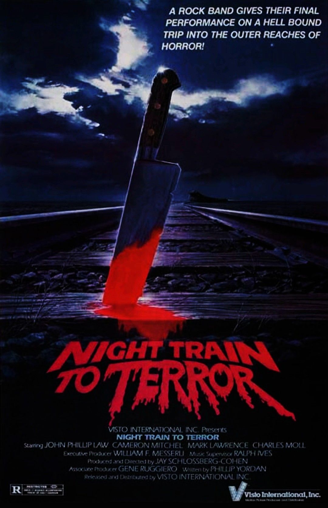 Noche en el tren del terror (Night train to terror, 1985) es una película dirigida por John Carr, Phillip Marshak y Tom McGowan que se encuentra protagonizada por Tony Giorgio, Ferdy Mayne y Byron Yordan entre otros. La trama nos cuenta como Dios y el Diablo se disputan las almas de los viajeros de un tren mientras cuentan historias escabrosas durante el trayecto sobre muertes varias, con el fin de decidir el destino de las libertinas personas que tienen entre manos. Un clásico indiscutible de la caspa a modo de antología de horror que ha desfilado por varios festivales del denominado cine cutre, cosa que ha logrado desplazar a este título del olvido. Filme divertido y zetoso que emana ese encanto de los ochenta que cuenta con una tema musical central la mar de pegadizo y cuyas historias son cuanto menos ocurrentes a la par que cochambrosas. Si nos olvidamos de su montaje caótico y sus interpretaciones histriónicas, estamos ante un viaje de lo más disfrutable al corazón del mismísimo espanto a ritmo de pop rock. Ideal para ver de madrugada.