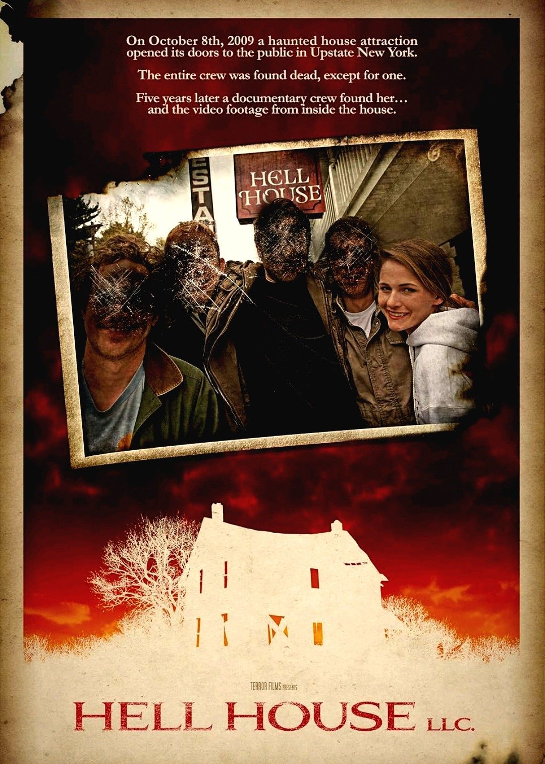 Hell House LLC (2015) es una película dirigida por Stephen Cognetti que se encuentra protagonizada por Gore Abrams, Danny Bellini, Jared Hacker, Alice Bahlke y Lauren A. Kennedy entre otros. La trama nos cuenta como un grupo de personas que se encuentran organizando una atracción de casa del terror, se verán amenazados por fuerzas sobrenaturales muy reales. Cinta en plan falso documental que resulta entretenida si gusta el formato pero que a excepción de un par de momentos logrados, todo queda bastante descafeinado. Reservada para fans del found footage.