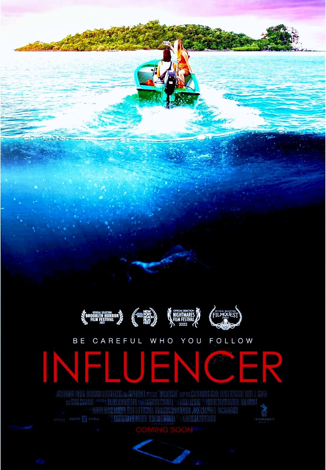 Influencer (2022) es una película dirigida por Kurtis David Harder que se encuentra protagonizada por Emily Tennant, Sara Canning, Cassandra Naud y Rory J. Saper entre otros. La trama nos cuenta como una influencer se hace amiga de una chica en Tailandia y juntas van a visitar lugares de interés hasta que ambas acaban en una isla desierta. Es ahí donde comienza una historia tan oscura como siniestra. Interesante thriller centrado en la superficialidad de las redes sociales y las amistades tóxicas. Un título bastante disfrutable y que agradará al espectador medio. Va recomendado.