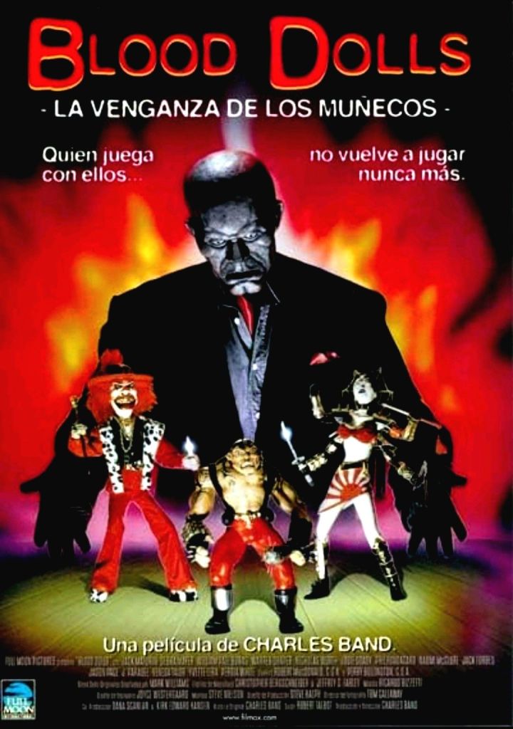 La Venganza de los Muñecos (Blood Dolls, 1999) es una película dirigida por Charles Band que se encuentra protagonizada por Debra Mayer, Phil Fondacaro, William Paul Burns y Jason Pace entre otros. La trama nos cuenta como un excéntrico millonario cuya identidad se encuentra oculta bajo una máscara, decide crear unas figuras en miniatura para aniquilar a la competencia en sus futuras negociaciones a modo de revancha. Extraña combinación de horror y humor cuyos resultados van más allá de lo bizarro. Una de las cintas más divertidas y chocantes de la mítica productora Full Moon que es a día de hoy, un clásico de culto. Atención a la diabólica utilización de un peculiar servicio de música bajo demanda que utiliza el protagonista principal. Una locura maravillosa de Serie B con un guión sorprendentemente muy bien escrito para su propósito.