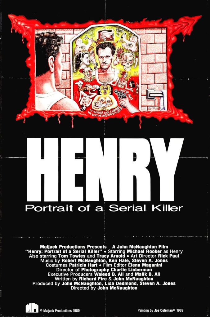 Henry: Retrato de un Asesino (Henry: Portrait of a Serial Killer, 1986) es una película dirigida por John McNaughton que se encuentra protagonizada por Michael Rooker, Tracy Arnold y Tom Towles entre otros. La trama nos cuenta como un hombre que malvive junto a otro en un cochambroso apartamento, comete crímenes violentos de todo tipo con la aprobación de su compañero. La llegada de una inesperada visita femenina trastocará su mundo. Clásico indiscutible de los años ochenta que presentaba una historia donde la visión de un cadáver tiene mayor impacto que cualquier crueldad plasmada en pantalla. Gran labor del reparto y en especial a un carismático Michael Rooker con un igualmente correcto equipo técnico tras las cámaras. Imprescindible.